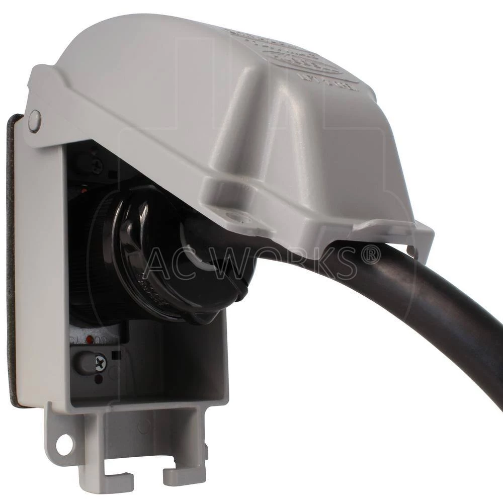 This AC WORKS brand extension cord is very durable. It is 1 ft. L with a NEMA TT-30P to a NEMA TT-30R. This 3-prong RV outlet extender is heavy-duty and is used to get 125-Volt power from a generator or campground power pedestal. It can be used for RVs, food trucks, and even emergency power. The cord is flexible and durable as well as weather and water-resistant. This outlet extender is great for TT-30 outlet boxes that have a long lower lip, which would block the use of 90° plugs and cords. Included with your purchase is a 5-year limited warranty.