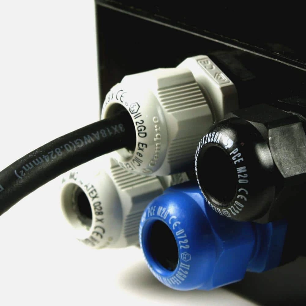 - Easily mounts to panel or boxes with M20 threads or 20 mm wide hole using the included locknut