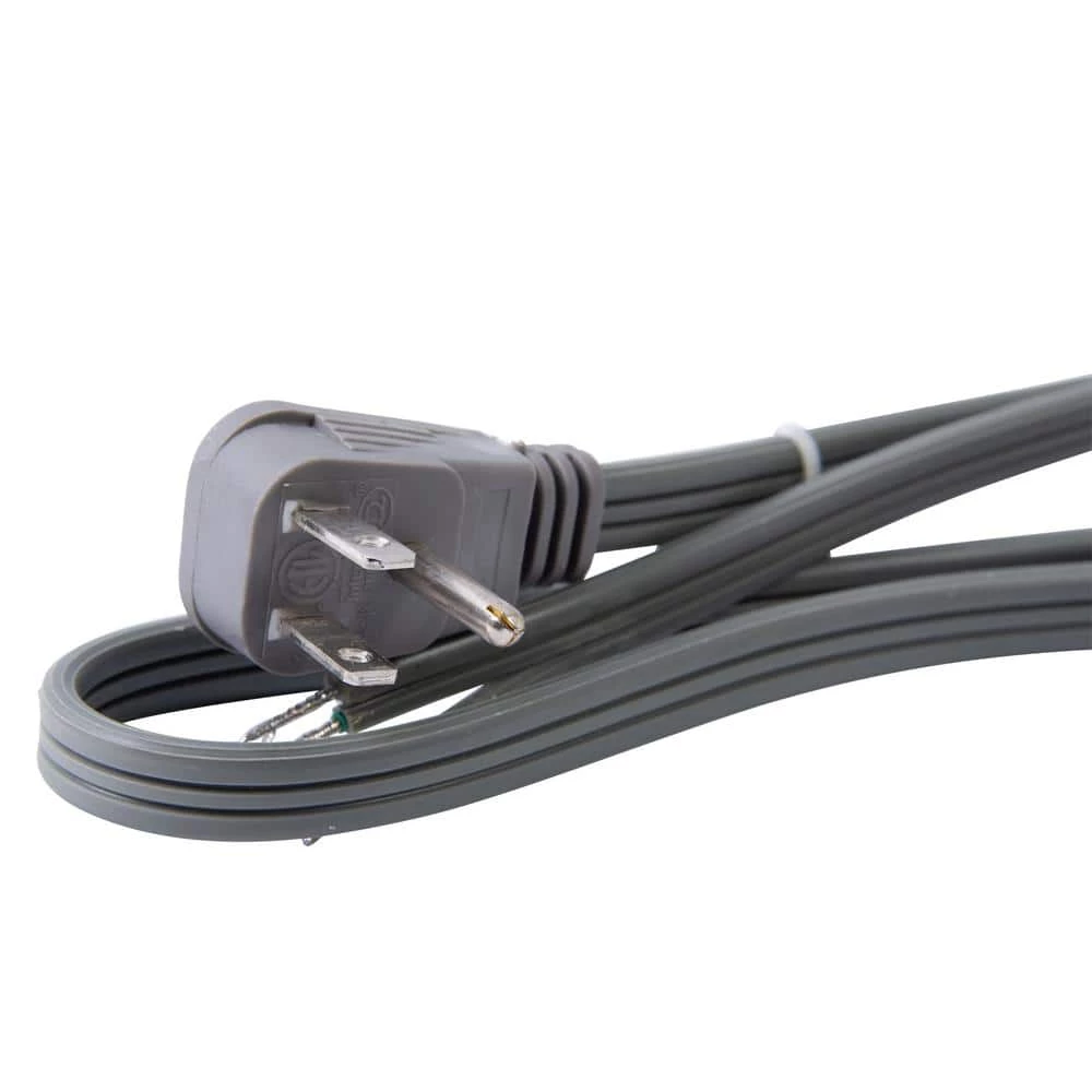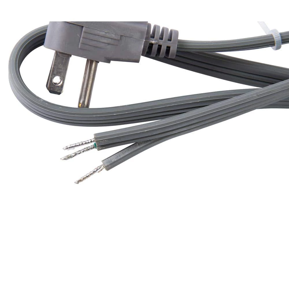 The Bergen 3 ft. gray garbage disposal power replacement cord is constructed with 16/3 cable and molded NEMA 5-15 plug. It features a right angle plug on one end and the other end is split, stripped and tin dipped. The jacket is made of durable PVC material.