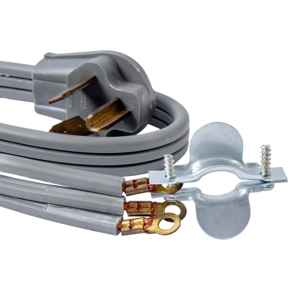 The Bergen 3-Wire Dryer Cord Set includes a right-angle plug, ring terminals for secure connection, and strain-relief kit. Designed to fit most homes built after 1996, it accommodates 10/3 cord size. Made of durable PVC for indoor use.
