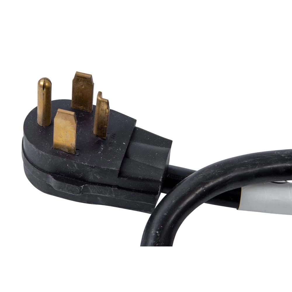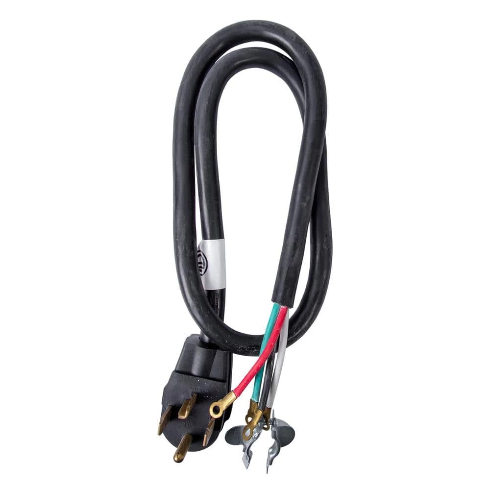 The Bergen 4-Wire Dryer Cord Set includes a right-angle plug, ring terminals for secure connection, and strain-relief kit. Designed to fit most homes built after 1996, it accommodates 10/4 cord size. Made of durable PVC for indoor use.