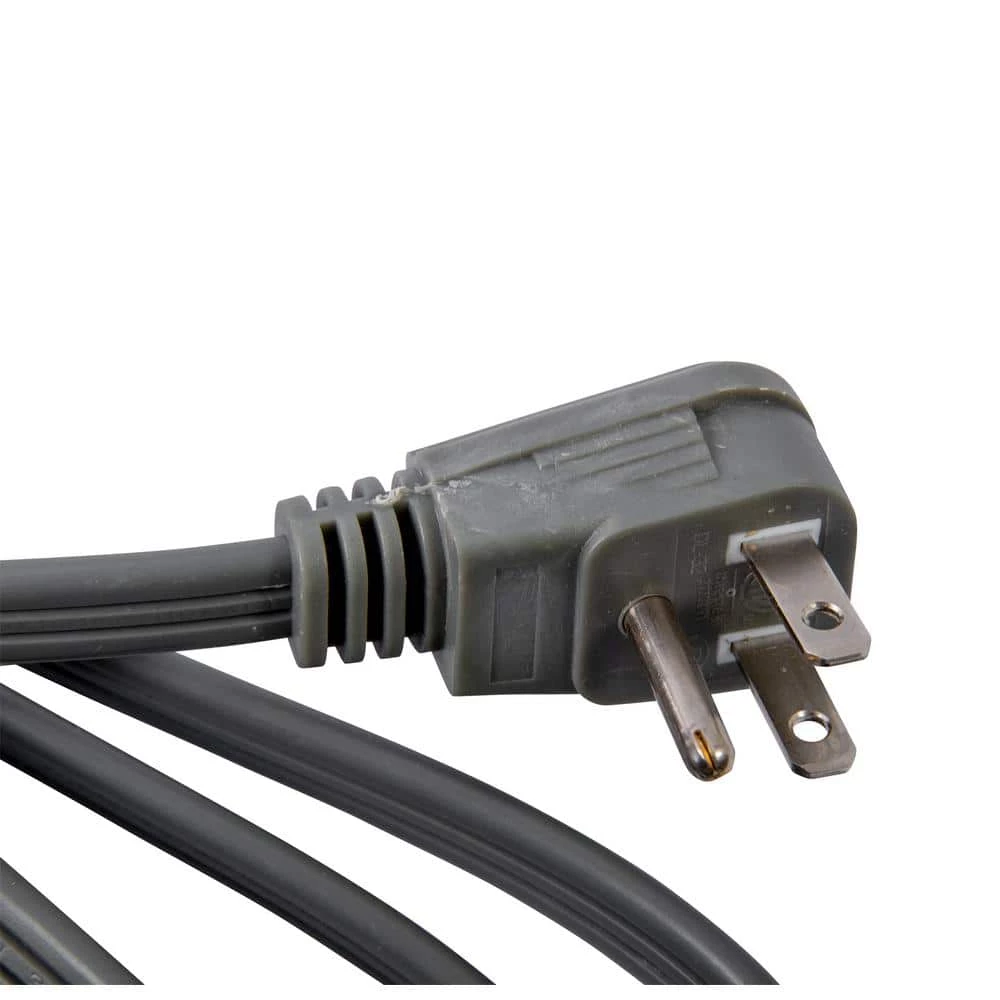 The Bergen 6 ft. gray garbage disposal replacement power cord is constructed with 16/3 cable and molded NEMA 5-15 plug. It features a right angle plug on one end and the other end is split, stripped and tin dipped. The jacket is made of durable PVC material.