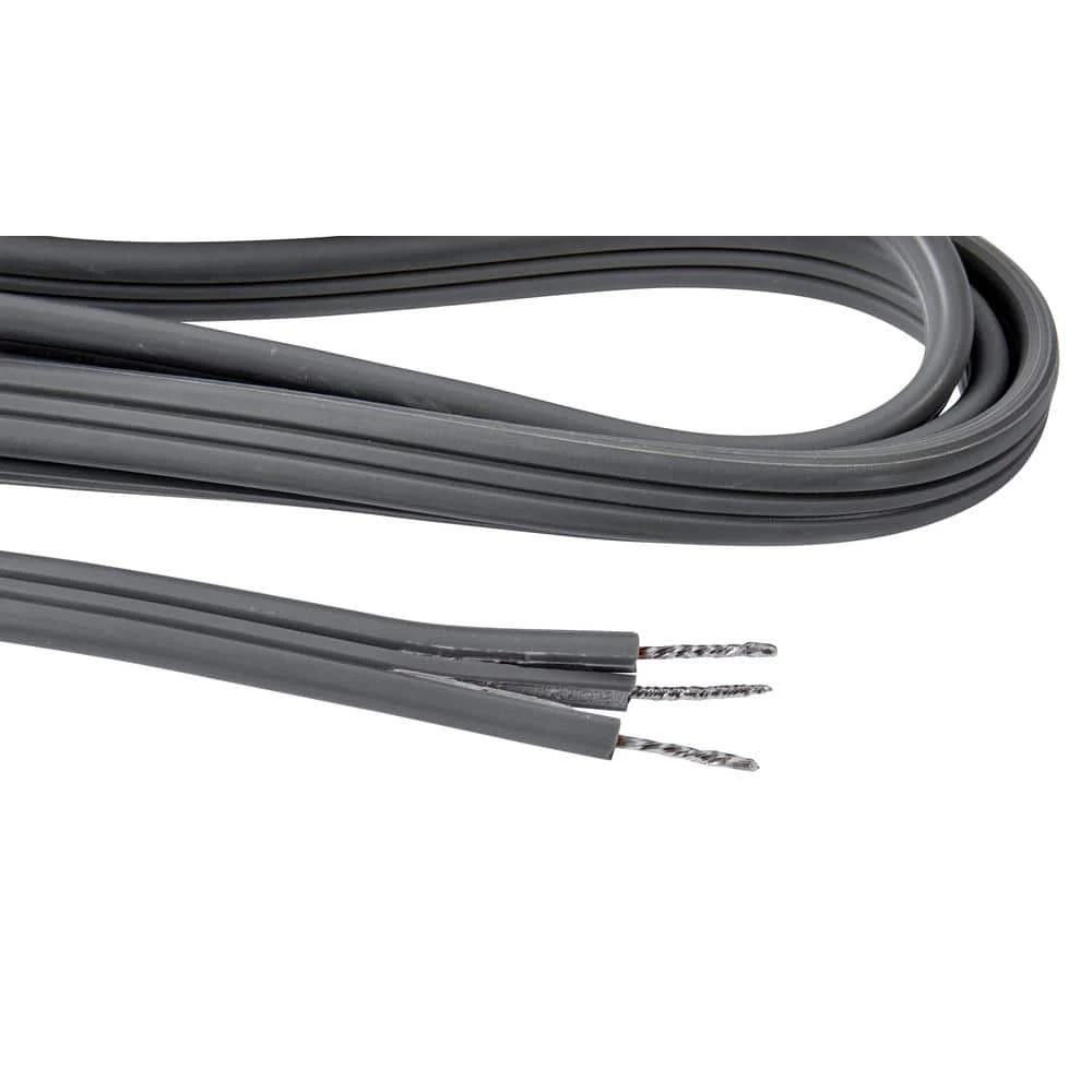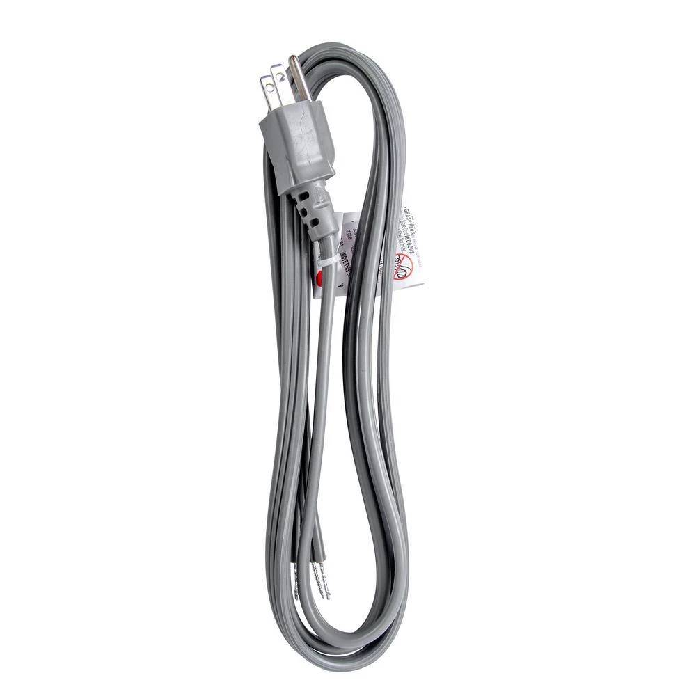 The Bergen 6 ft. gray garbage disposal replacement power cord is constructed with 16/3 cable and molded NEMA 5-15 plug. It features a straight plug on one end and the other end is split, stripped and tin dipped. The jacket is made of durable PVC material.