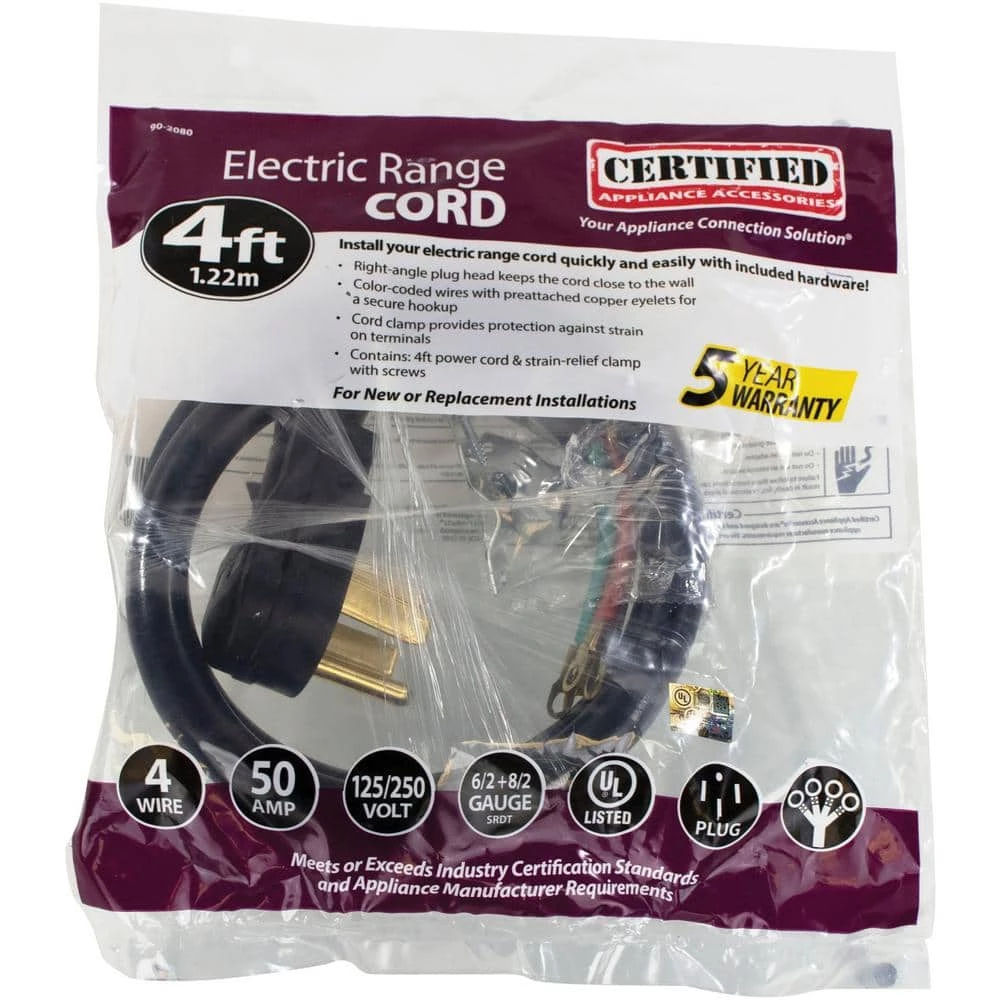 For years, licensed plumbers, electricians and appliance installers have relied on CERTIFIED APPLIANCE ACCESSORIES for their power cords, hoses and connectors. Now you can too. Enjoy the convenience offered by this range cord from CERTIFIED APPLIANCE ACCESSORIES. Its flexibility and durability ensure a reliable connection for your next home installation project. This high-quality range cord has been thoroughly tested and is backed by a 5-year limited warranty. Follow the illustrated, step-by-step directions included in the packaging. Always consult your appliances installation instructions. Check your appliance’s manual for the correct specifications to ensure this is the right cord for you.