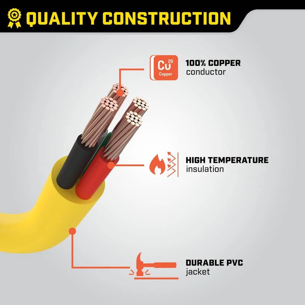 - The cold and heat resistant 25 ft. 10-Gauge wire stays flexible in extreme temperatures and is rated for 125-Volt/250-Volt use