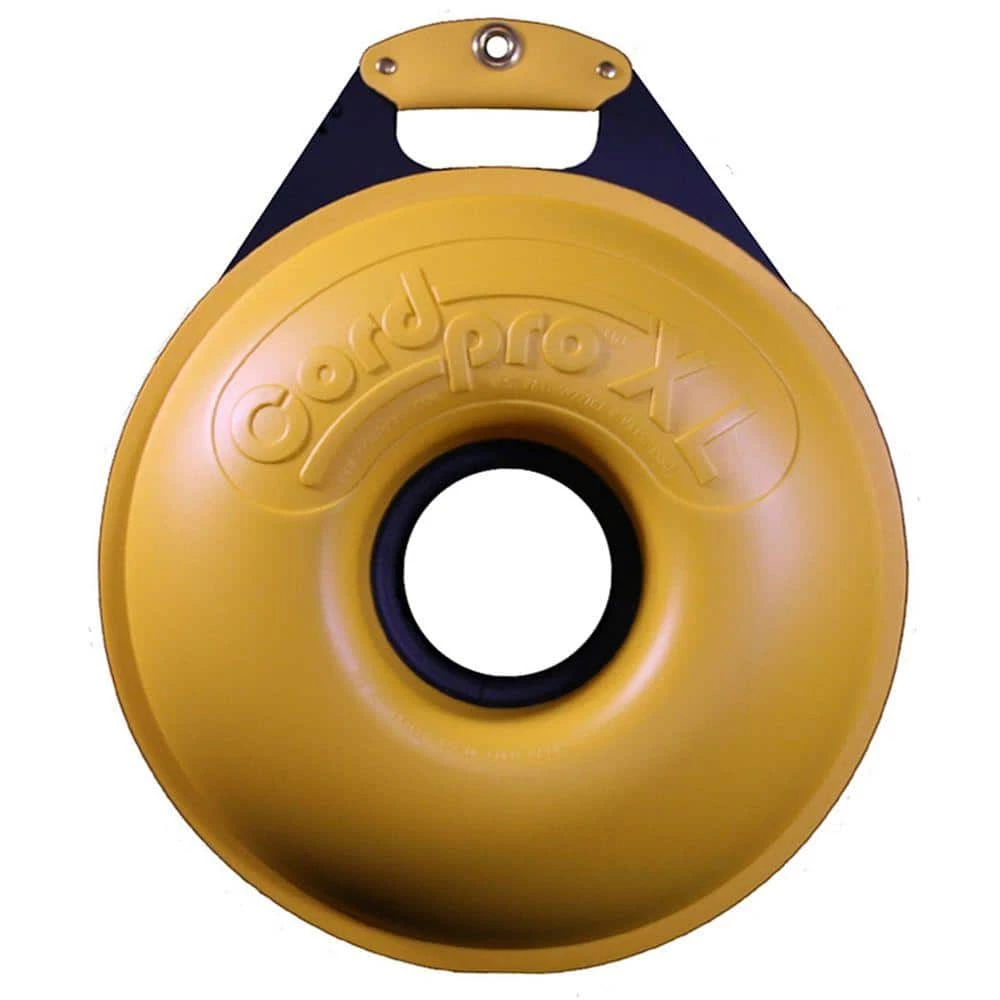 The Cordpro XL 150 ft. 12/3 Heavy Duty Contractor-Grade Cord Organizer is one of the quickest and easiest ways to organize, use and store your cords, small hoses, cables, etc. It unreels as you work, winds up easily and never tangles. It stays on the cord, so it’s right there when you need it. The organizer consists of two flexible outer walls, separated by a divider. When you load your cord into this unique organizer, the divider automatically diverts the cord into its appropriate chamber. As you move and work, the chambers retain the unused portion of cord inside, thus protecting it and allowing the organizer to travel across the ground and over obstacles as it unreels the amount of cord being used. The exclusive design also allows you to unwind either end of cord separately at any time. You can also easily store the cord ends inside when not in use to protect them. Made from outdoor grade thermoplastic, the Cordpro XL is welded together and the seam is covered with an ergonomic rubber grip. The built-in carry handle makes handling heavy cords to and from the job site easier. With no moving parts to wear out, the construction provides extreme durability.