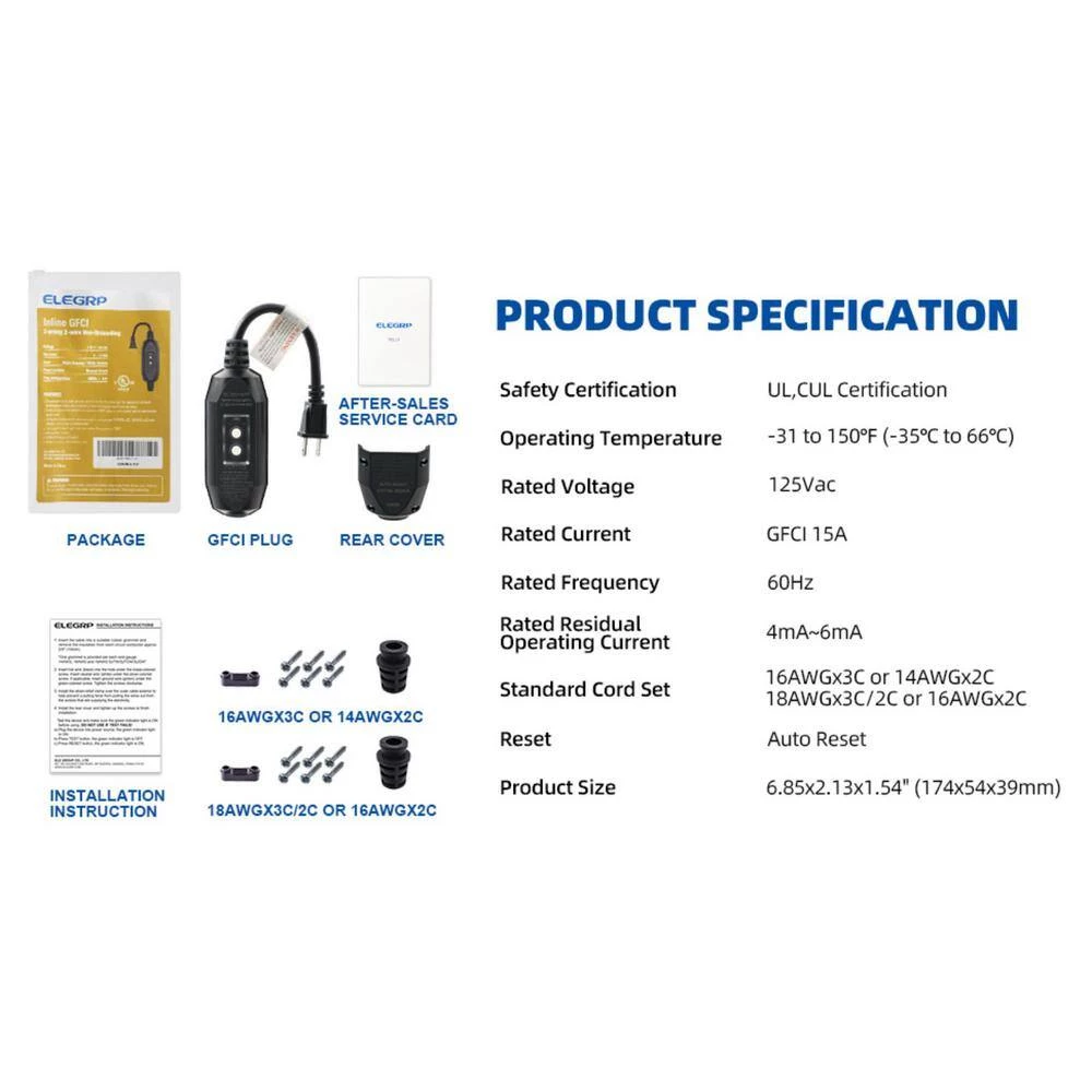 - Always Safe – In-line GFCI features surge protection and lighting protection function withstanding 6 kilovolt. Performed 6000+ times factory test, which is twice the testing times of UL standard.
