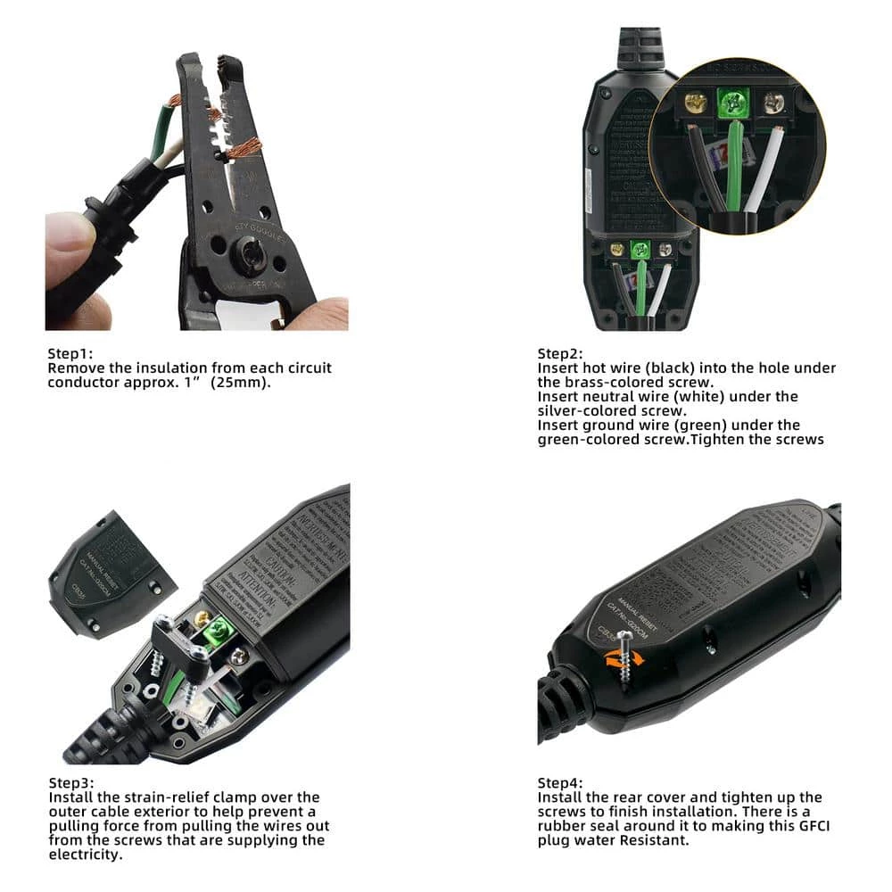 The Portable GFCI units (Ground Fault Circuit Interrupters) offer protection for 2-wire or 3-wire appliances and tools to avoid electric shock for people in all work environments. This GFCI outlet will automatically conducts a self-test (auto-monitor) every 5 seconds to ensure the GFCI is continually working to protect people from electrocution, which exceeds the UL standards of self-test frequency of 3 hours.They are perfect for indoor or outdoor use in a variety of temporary power applications, such as portable pools and generators,power pressure washer, submersible pumps, vending machines, dishwashers, drinking water coolers and bottle fill stations, cord-and-plug-connected high-pressure spray washing machines,tire inflation machines and more. They are easy to install with providing 3 different grommets for wiring cable 14 AWG, 16 AWG and 18 AWG.