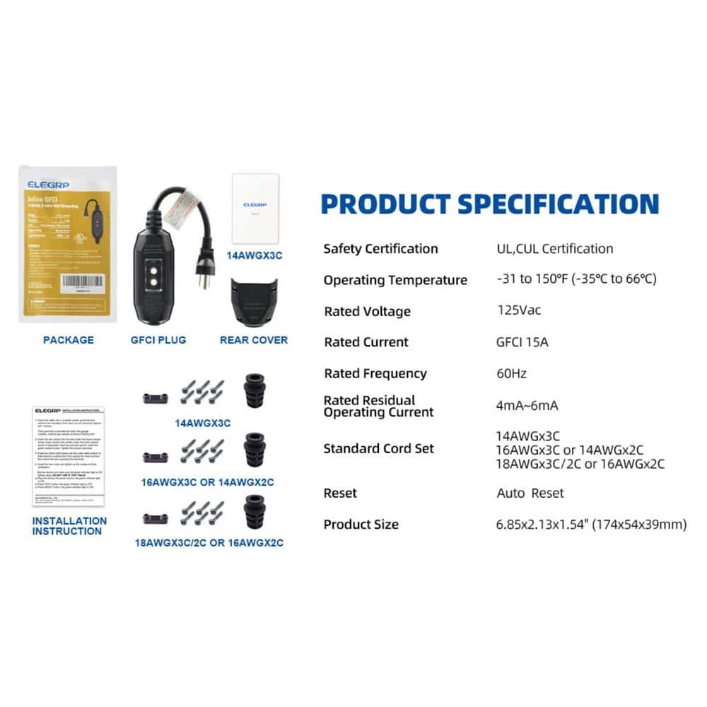 - Always Safe – in-line GFCI features surge protection and lighting protection function withstanding 6 kilovolt. Performed 6000+ times factory test, which is twice the testing times of UL standard.