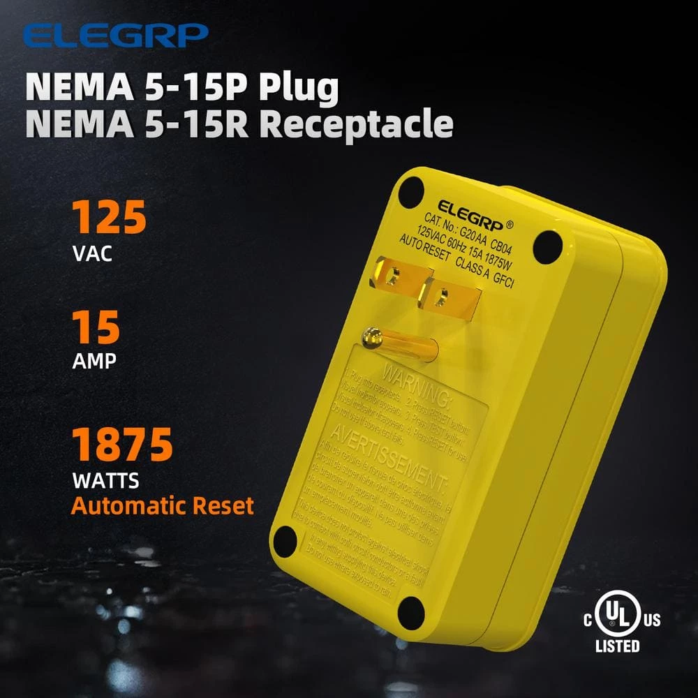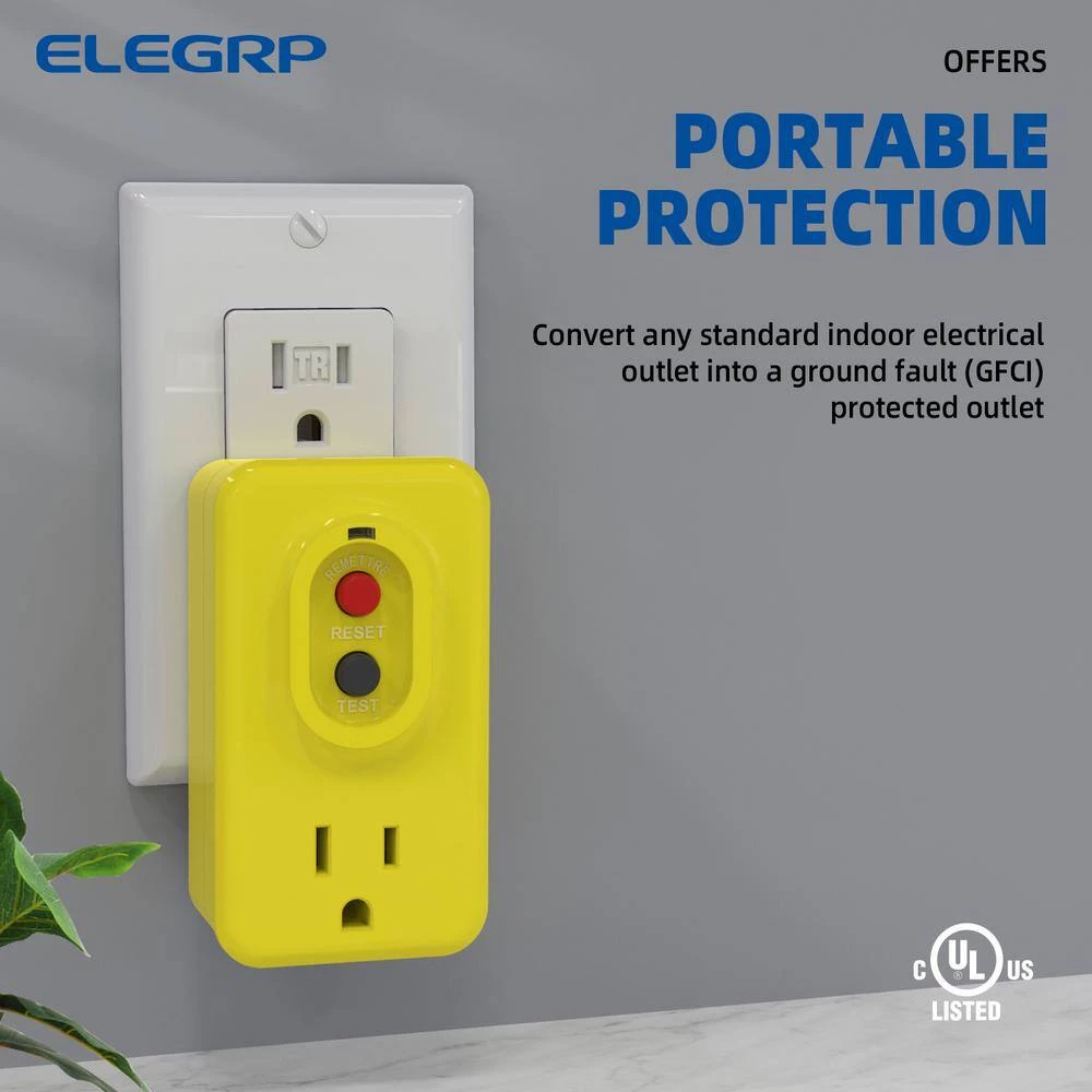 GFCI adapter plug features a NEMA 5-15P plug and NEMA 5-15R receptacle, which could convert any standard indoor electrical outlet into a ground fault (GFCI) protected outlet. When the leakage current in the circuit or load equipment or the ground neutral fault reaches to the 4~6mA, the GFCI plug can break the circuit automatically within 0.025 Seconds (25ms). The GFCI outlet automatically conducts a self-test (auto-monitor) every 5 seconds to ensure the GFCI is continually working to protect people from electrocution, which exceeds the UL standards of self-test frequency of 3-hours. These are the ideal products to provide safety protection for electrical devices without GFCI, shall be easily connected to the power cord of the electrical devices and are widely applicable to cleaning machines, cutting machines, vacuum cleaners, water pumps, household appliances, outdoor power tools and other portable electrical equipment.