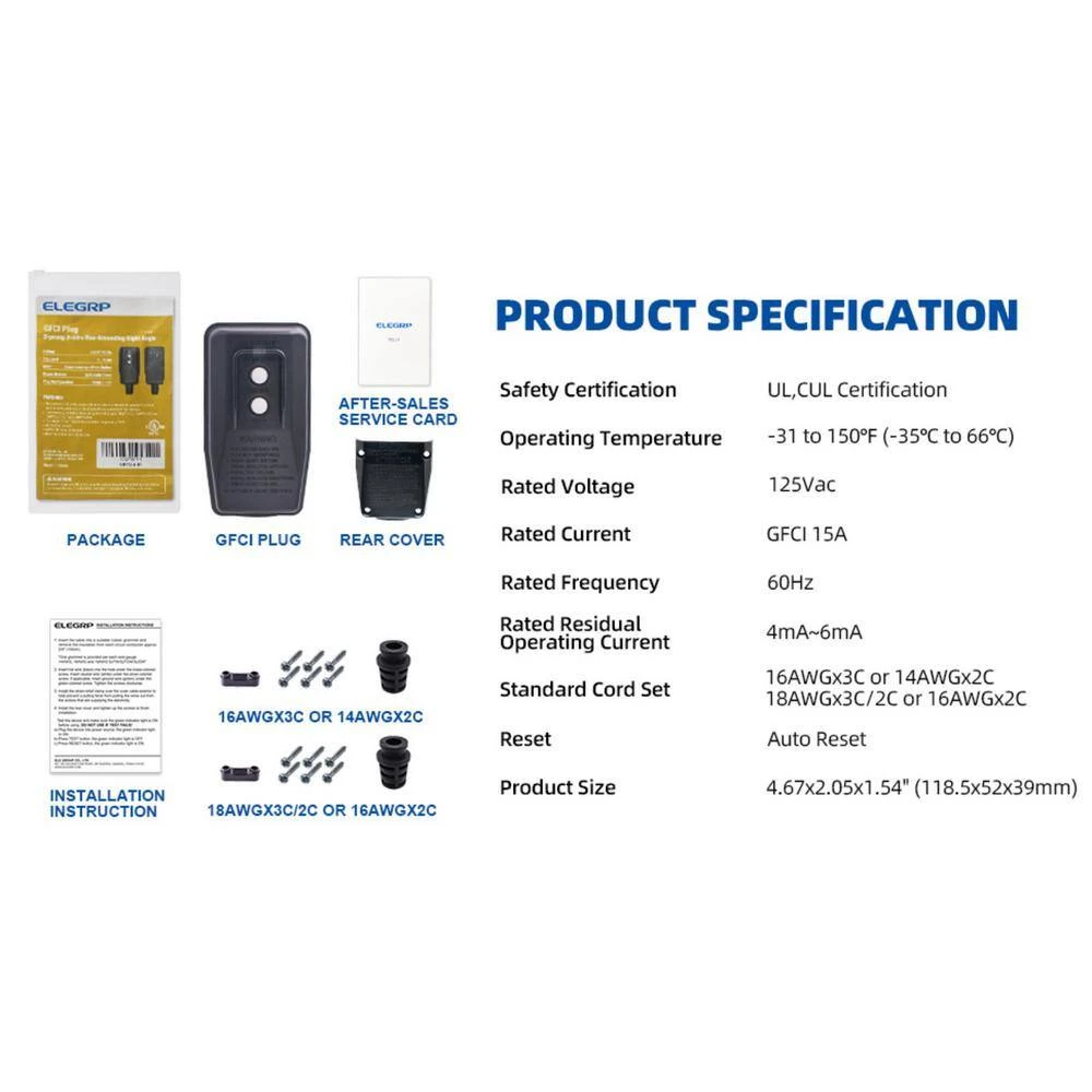 The Portable GFCI units (Ground Fault Circuit Interrupters) offer protection for 2-wire or 3-wire appliances and tools to avoid electric shock for people in all work environments. This GFCI outlet will automatically conducts a self-test (auto-monitor) every 5 seconds to ensure the GFCI is continually working to protect people from electrocution, which exceeds the UL standards of self-test frequency of 3 hours.They are perfect for indoor or outdoor use in a variety of temporary power applications, such as portable pools and generators,power pressure washer, submersible pumps, vending machines, dishwashers, drinking water coolers and bottle fill stations, cord-and-plug-connected high-pressure spray washing machines,tire inflation machines and more. They are easy to install with providing 3 different grommets for wiring cable 14 AWG, 16 AWG and 18 AWG.