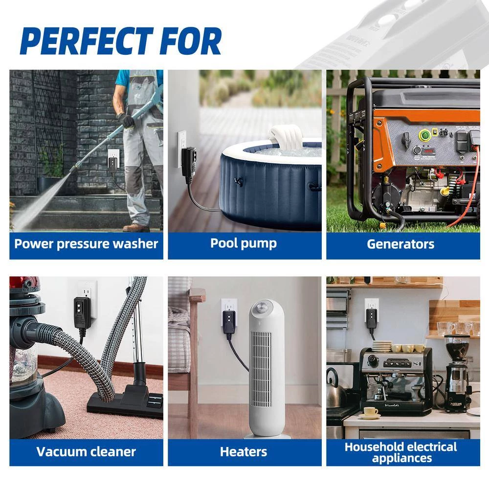 - Wide application – perfect for indoor or outdoor use in a variety of electrical equipment, such as generators, cleaning machine, power pressure washer, pool pump, generators, vacuum cleaner, pumps, heaters, household electrical appliances, cord-and-plug-connected high-pressure spray washing machines,tire inflation machines, dishwashers, etc.