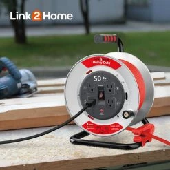 Link2Home 25 ft. 16/3 Extension Cord Storage Reel with 4 Grounded Outlets and Overload Reset Button