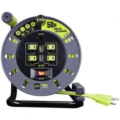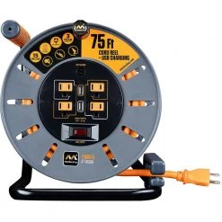 Masterplug 75 ft 15 Amp 12 AWG Large Open Reel with USB Charging and 4-Sockets