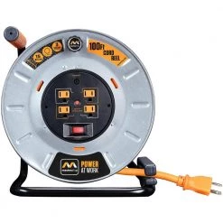 Masterplug 100 ft. 15 Amp 12 AWG Large Open Metal Reel with 4-Sockets