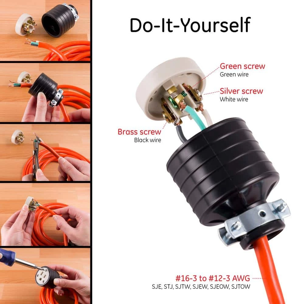 - Use with 3-wire cord from #18/3 to #14/3 AWG round type SVT/SJT or flat type SPT-2