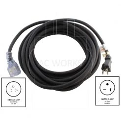 AC WORKS 75 ft. SOOW 10/3 NEMA L6-30 30 Amp 250-Volt Rubber Extension Cord