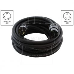 AC WORKS 50 ft. Soow 10/3 3-Prong Nema L5-30 125-Volt 30 Amp Generator Rubber Extension Cord