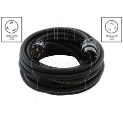 AC WORKS 25 ft. Soow 10/3 3-Prong Nema L5-30 125-Volt 30 Amp Generator Rubber Extension Cord
