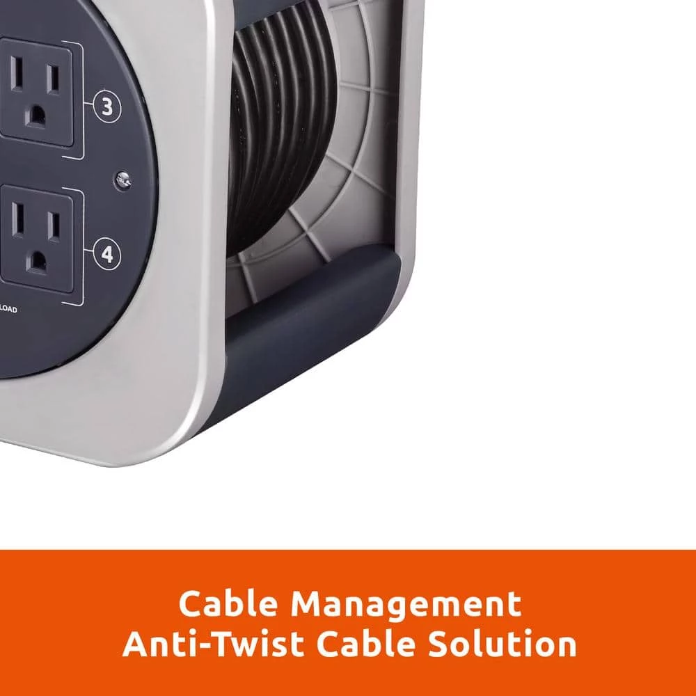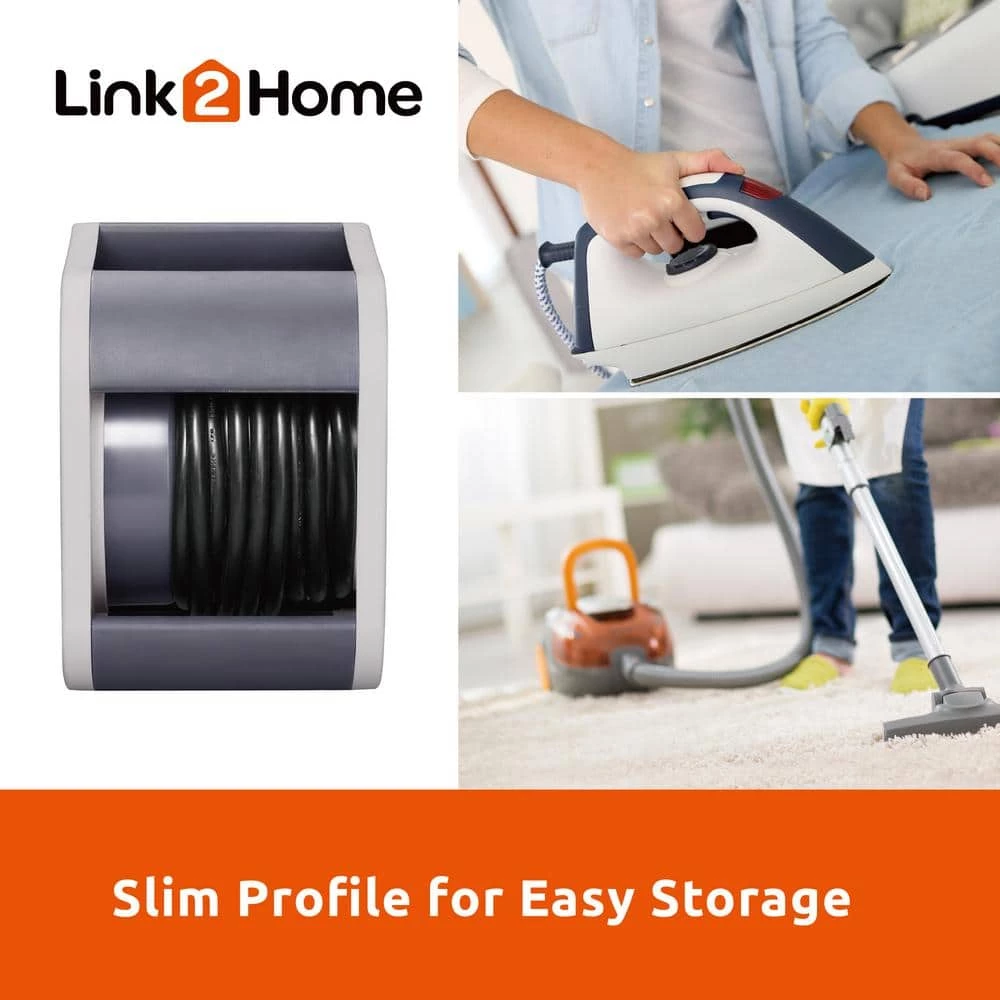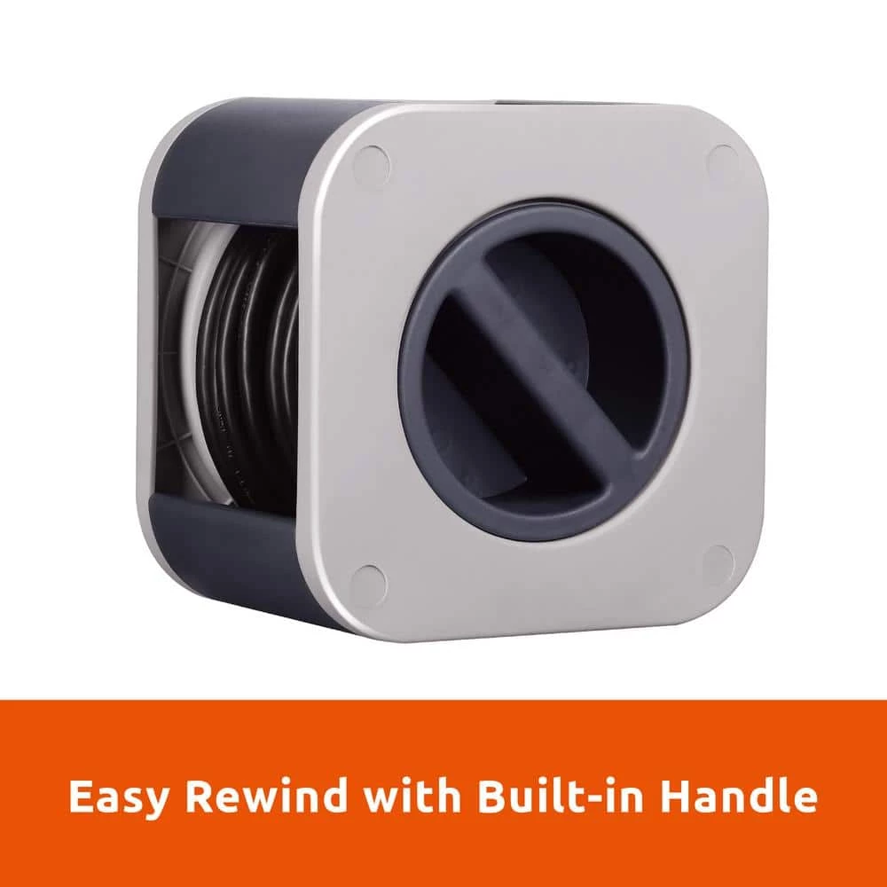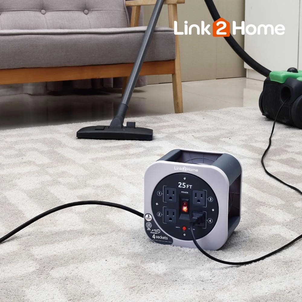 Link2Home Cord Reel 25 ft. Extension Cord 4-Power Outlets with 16 AWG SJT Cable is the perfect power solution for your home, garage, backyard, tiny spaces, urban living or office. Tangle free cord management helps cords stay organized and tidy for next use. Extension cord reel features easy grip handle for smooth rewind. Compact design enables easy storage for when not in use. Lightweight 4-handle design.