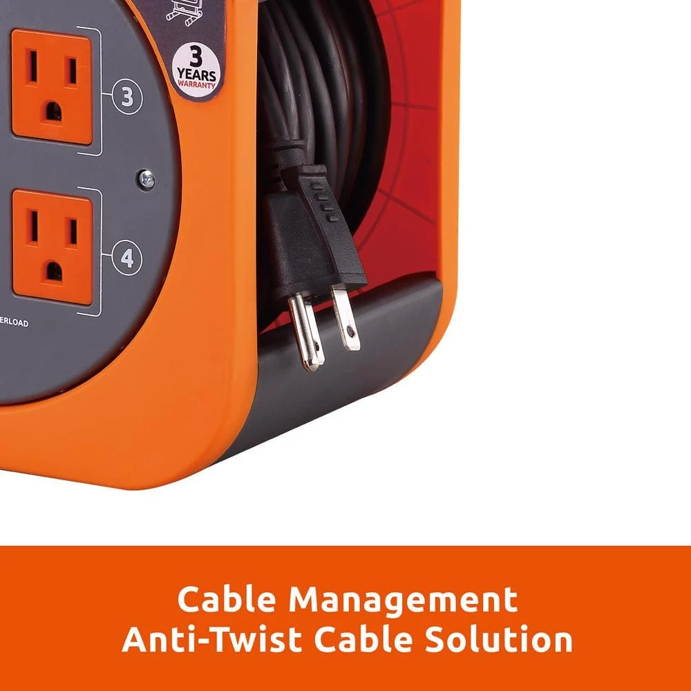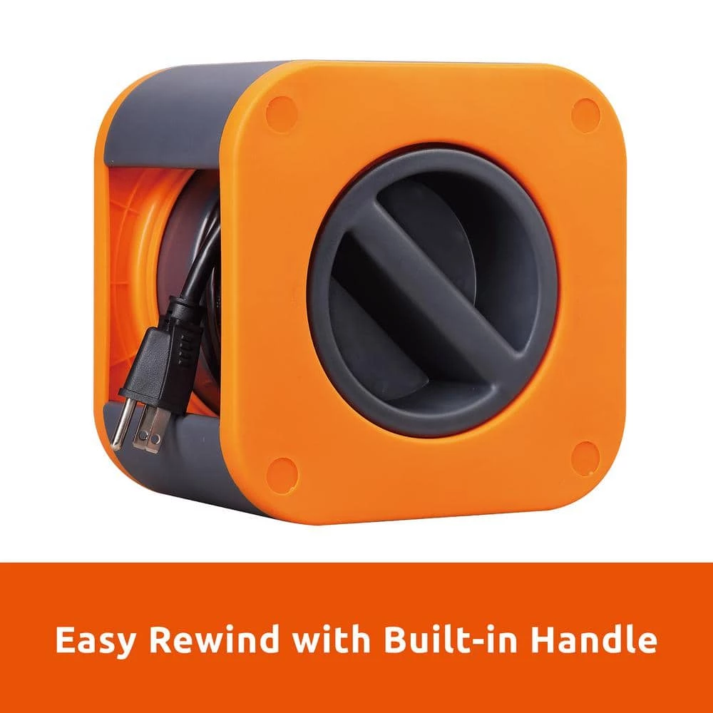 - Stay organized: extension cord easily winds into reel keeping cords neat and tidy for next use