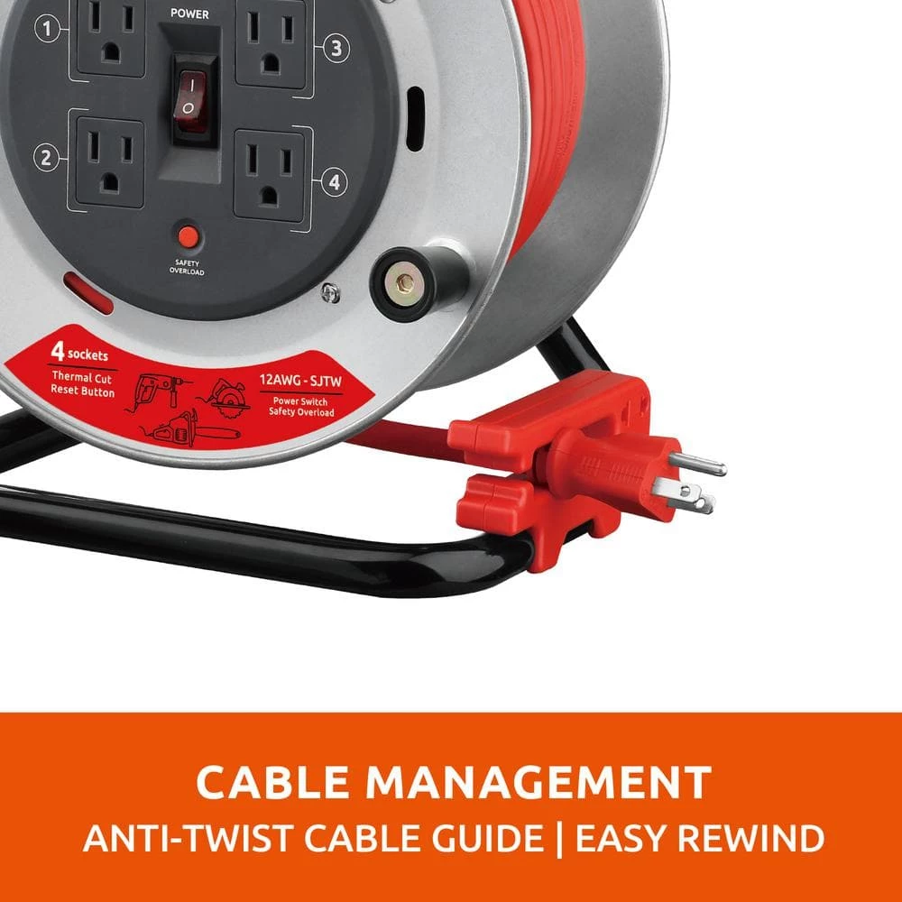 - Professional-grade heavy-duty cord management: features 4 grounded outlets and durable 50 ft. 12AWG, High visibility cable allowing ease and convenience when connecting power equipment such as drills, table saws, power washers, grinders and more