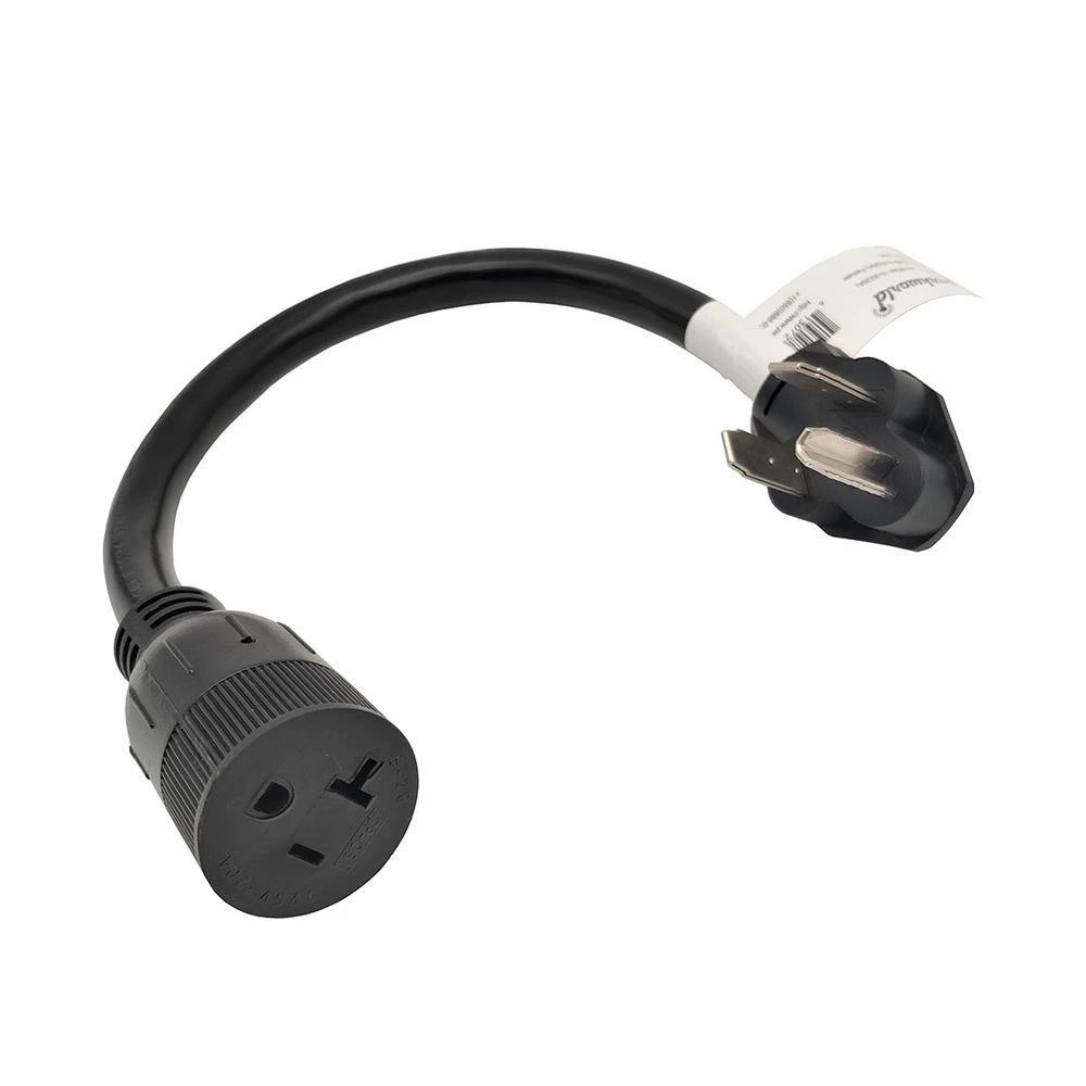 Parkworld brand #886344 1.5 ft. 15 Amp 250-Volt NEMA 10-30P to 5-15R(T-Blade 5-20R) Power Adapter Cord. This adapter will let you connect any appliance having a 15 Amp NEMA 5-15/20 plug to your 30 Amp old dryer NEMA 10-30 wall outlet (Please note this adapter cord is only for 250-Volt). It has a 3-Prong 30 Amp 125/250-Volt 10-30P male plug and a 15 Amp 125-Volt Regular Household 5-15R/20R female connector. It uses UL STW 10AWG/3C stranded wire, 100% copper conductor for heavy-duty performance, the PVC jacket ensures that cable can be used in all weather conditions.