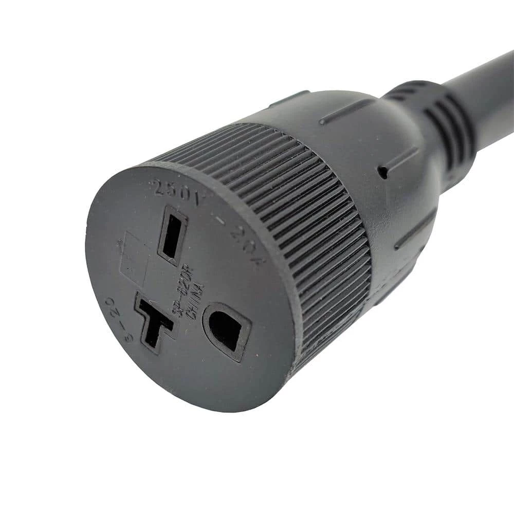 - Receptacle: NEMA 6-20R/15R, 20 Amp, 250-Volt T-blade female receptacle