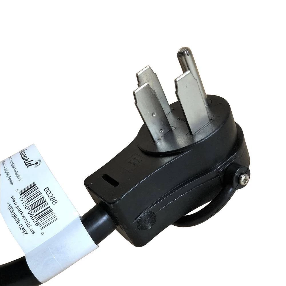 - Plug: NEMA 14-50P, 50 Amp, 125/250-Volt RV/generator/electric range 4-prong male plug