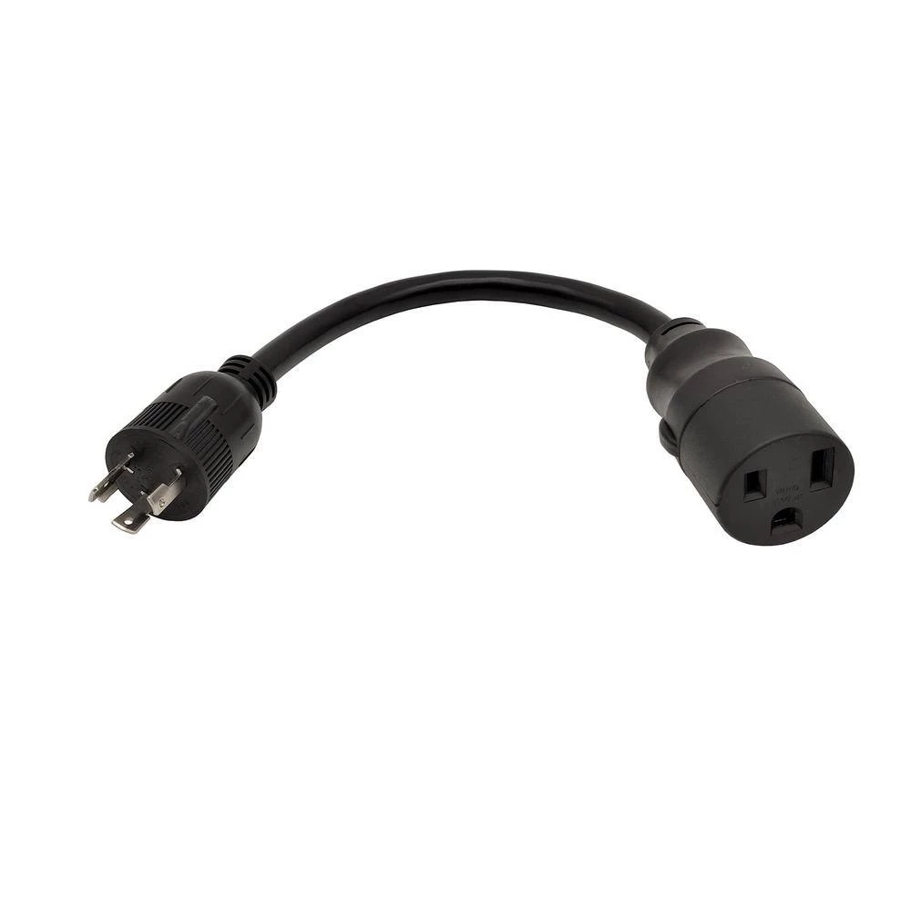 PARKWORLD brand #885392C 1.5 ft. 30 Amp 250-Volt NEMA L6-30P to 6-50R Power Adapter Cord. This adapter cord will let you connect any appliance having a 3-Prong NEMA 6-50P plug to your 30 Amp Locking 3-Prong NEMA L6-30 wall outlet. It has a 30 Amp 250-Volt 3-Prong L6-30 male plug and a 50 Amp 250-Volt 3-prong welder 6-50R female Connector. It uses UL STW 10AWG/3C stranded wire, 100% copper conductor for heavy-duty performance, the PVC jacket ensures that cable can be used in all weather conditions.