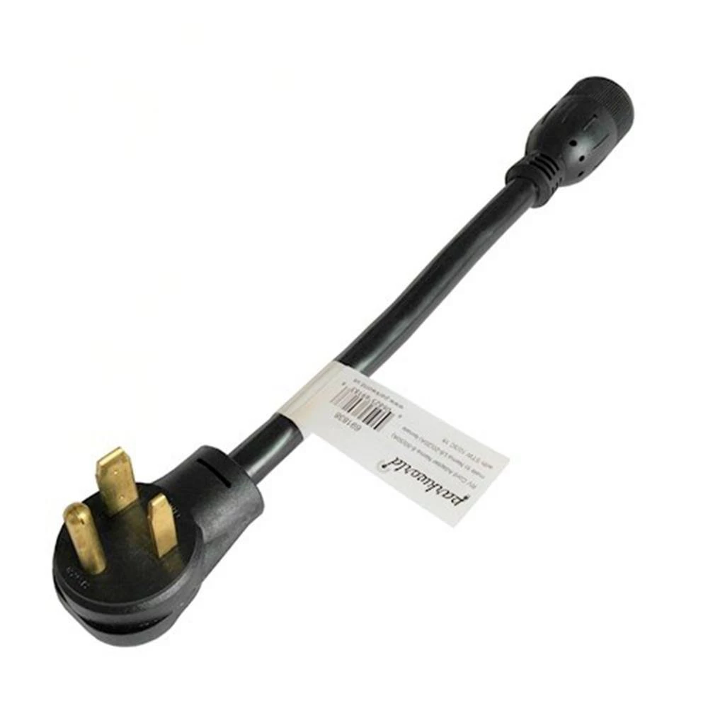 This parkworld brand pigtail adapter cord is heavy-duty. It is a NEMA 6-50P plug to L6-20R female adapter cord in 1 ft. L. It has a NEMA 6-50P Welder 50 Amp, 250-Volt, 3-prong male plug and a twist locking NEMA L6-20R female receptacle. The cable is 10-Gauge/3C, 100% copper conductor for heavy-duty performance, the STW jacket cable ensures that cable can be used in all weather conditions.