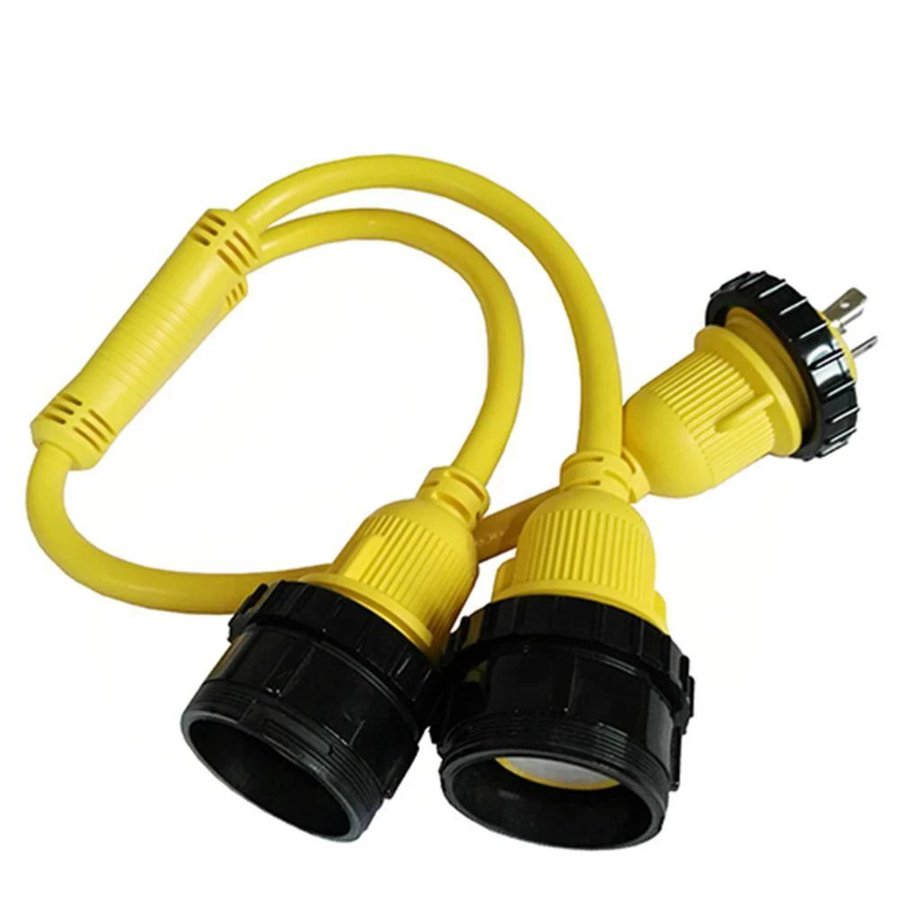 - Shore power 30 Amp 125-Volt Y adapter cord NEMA L5-30P to (2) L5-30R receptacle, RV and marine boat Y splitter cord
