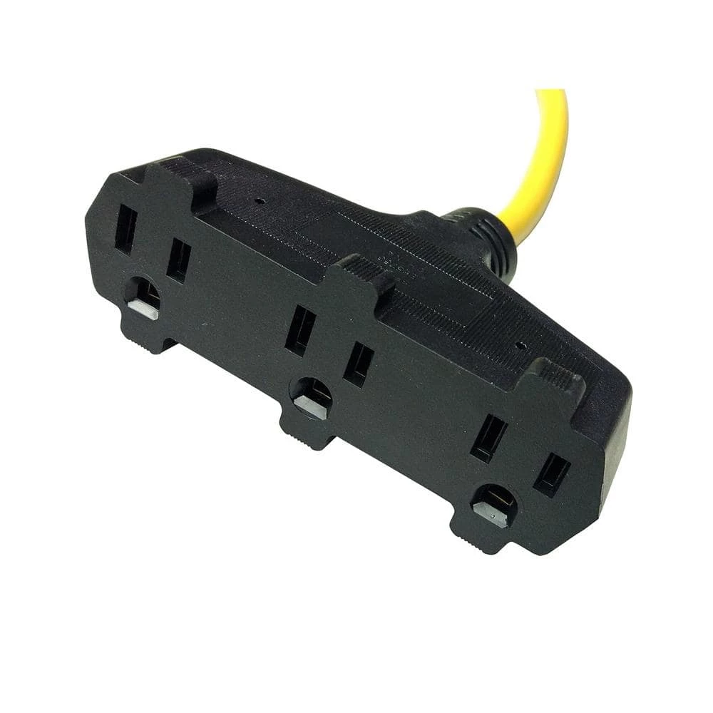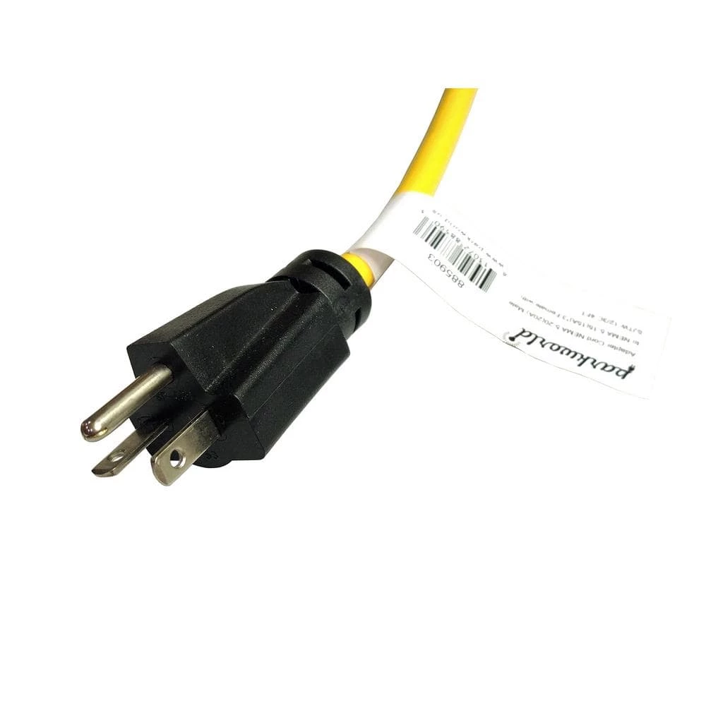 PARKWORLD brand #885903 4 ft. NEMA 5-20P to 3x 5-15R Multi-outlets Power Adapter Cord. This adapter will let you connect any appliance having a NEMA 5-15 plug to your NEMA 5-20 wall outlet. This unique adapter gives you greater convenience and reduces wear on the electrical outlet from repeated plugging in and unplugging. It has a 3-Prong 20 Amp 125-Volt 5-20P male plug and 3 15 Amp 125-Volt 5-15R Tri-outlets female connector. It uses UL SJTW 12AWG/3C stranded wire, 100% copper conductor for heavy-duty performance, the PVC jacket ensures that cable can be used in all weather conditions.
