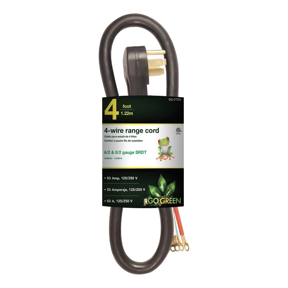 Hooking up an electric range with a 3-prong or 4-prong outlet box is actually an easy task thanks to the unique design of this appliance cord. Available in two lengths, 4ft and 6ft, it allows a stove to be placed anywhere near an electrical outlet. The ETL approved range cord comes in either 3-wire or 4-wire, whichever is needed for the brand of the appliance being connected. This product is durable and safe, the two things every electrical cord should be. Outlets that are wired for 125/250V can have the cord plugged safely into them. Not sure which wire cord you need? Refer to the range’s manual which has all the information you will need to get the job done correctly and efficiently. GoGreen offers a fully-paid recycling program at their own expense to further contribute to the GoGreen cause. Simply use the company’s dedicated website iRecycled.com to participate. Help save the planet with us, one extension cord at a time!