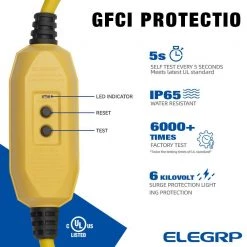 ELEGRP 3 ft. 15 Amp In-Line Self-Test Manual Reset Portable GFCI Plug with 3-Outlet Cord, Yellow