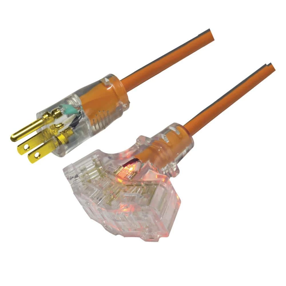 Power up to 3 electrical appliances or tools at the same time with the RIDGID 2 ft. Orange and Gray 12/3 Multi-Outlet Extension Cord. This extension cord offers a kink-free design and a power-on indicator light. It has a durable strain relief to make sure the plug securely connected with cable.