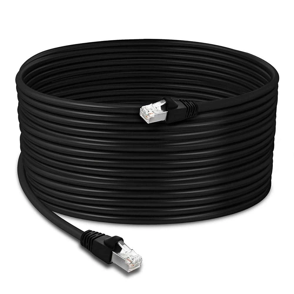 - Suitable for direct burial outdoors: ultra heavy-duty weatherproof design withstands high and low temperatures, direct UV Sunlight, rain, snow, dirt, dust, sand and other outdoor exposure for years of high-speed networking, strong, durable features include PVC waterproof jacket, RJ45 shielded connector plugs, 23 AWG BC pure copper, FTP foil twisted pair cabling and other hardy components