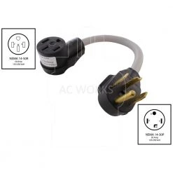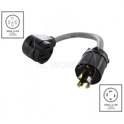 AC WORKS 1.5 ft. 50 Amp 14-50 Piggy-Back Plug with 10-30R Connector Adapter Cord
