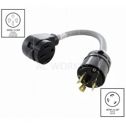 AC WORKS 1.5 ft. 30 Amp 4-Prong L14-30P Locking Plug to 6-15/20 Outlet with 20 Amp Breaker