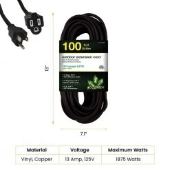Power By Go Green 100 ft. 14/3 SJTW Outdoor Extension Cord – Black