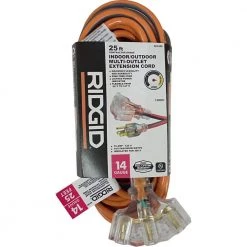 RIDGID 25 ft. 14/3 Multi-Outlet Extension Cord, Orange and Gray