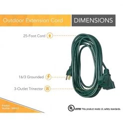 Woods 25 ft. 14/3 Multi-Outlet (3) Garden Outdoor Medium-Duty Extension Cord, Green