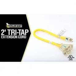 Yellow Jacket 2 ft. 12/3 SJTW In-Line GFCI Heavy-Duty Cord with Multi-Outlet (3) Power Light Block