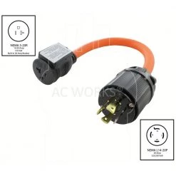 AC WORKS 1.5FT 50A 3-Prong 10-50P Dryer/Range/Welder Plug to Household Outlet with 20A Breaker