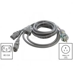 AC WORKS 10 ft. 13 Amp 16/3 Medical Grade Y-Cable with 2 C13 Connectors