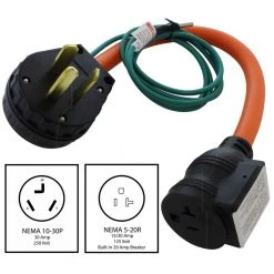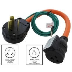 AC WORKS 1.5FT 30A 3-Prong 10-30P Dryer Plug to Household Outlet with 20A Breaker