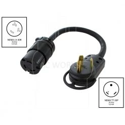 AC WORKS 1.5 ft. Temp Power L5-30P 30 Amp 3-Prong Generator Locking Plug to CS6364 50 Amp Connector