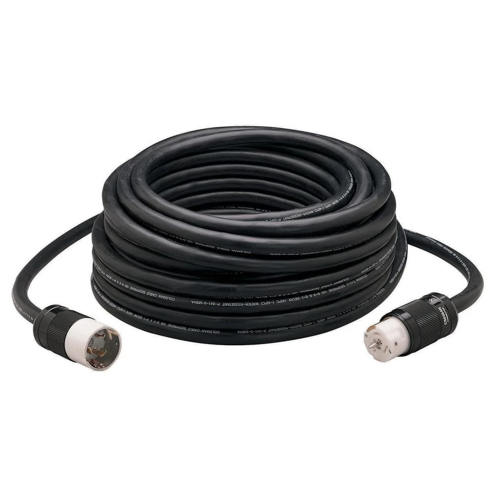 The Coleman Cable 19380008 50 ft. 50 Amp Twist-Lock Temporary Power Cord is manufactured using rugged 600 volt Type SEOW cable. It provides a superior alternative to ordinary SO cords. Type SEOW construction provides greater abrasion and wear resistance for longer cord life. This cord is always light weight and will make job site transportation easier. These cords are designed to supply 50 amp, 240 volt power to temporary power distribution centers with input current of 50 amps, 125/250 volt AC, 3-pole, 4 wire. Coleman Cable, Inc. is a leading manufacturer and innovator of electrical and electronic wire and cable products for the security, sound, telecommunications, electrical construction retail, commercial, industrial, irrigation, HVAC and automotive markets. Coleman Cable, Inc. offers a family of leading brands such as Designers Edge, Yellow Jacket, Woods and Moonrays.