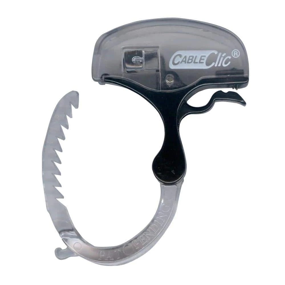 Mini Cable Clics are reusable and adjustable cable management solutions for use with earphones, chargers, personal electronics, small appliances, travel, and office accessories. The new Cable Clics feature an easy squeeze-and-release locking latch that readily opens with one hand. Constructed with durable UV resistant polymers and stainless steel the Cable Clic’s pivoting arm moves in a unique arc offering abundant space to collect and unbundle cables and cords. Its integrated ”Cable Keeper” provides a convenient attachment point. Cable Clics combine design, function, and durability producing compact devices perfect for organizing personal electronics and small cables. The mini Cable Clic is for organizing bundles from 5/8 in. to 1 in.