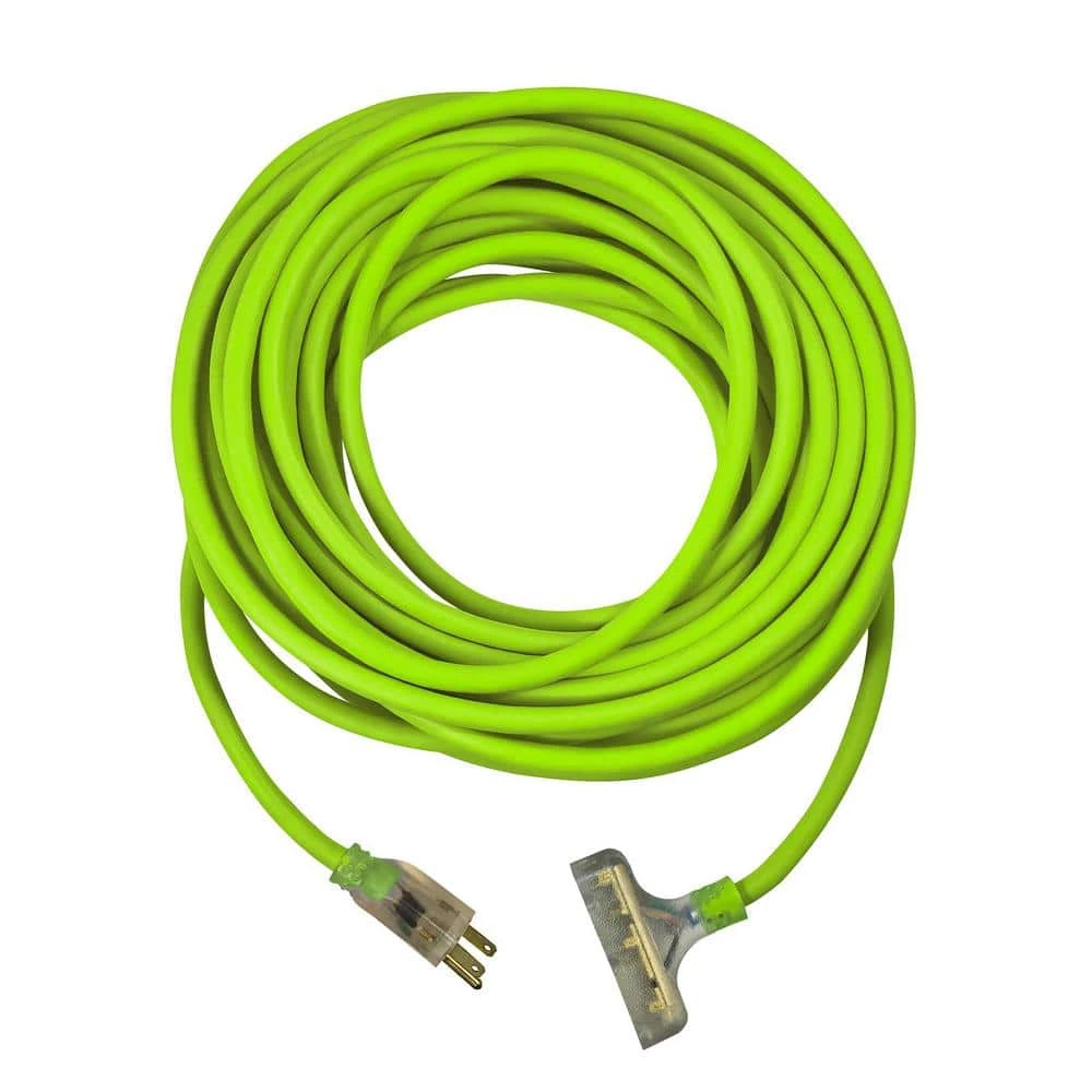 These USW VividFlex power cords are First in Flexibility and made for the Contractor. The wire is made to coil up easy and lays flat even in the coldest environment. The rugged, tough-skin outer jacket won’t tear or rip when used on rough jobsites. USW’s new VividFlex extension cords are oil resistant and feature 2-lighted plugs giving you a quick visual check for power.